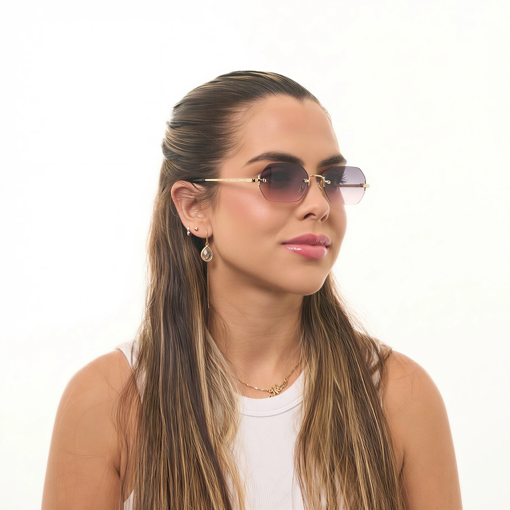 Design feminino, sofisticado e delicado, com ajuste confortável e leve. Suas lentes sem aro e em diferentes tonalidades proporcionam estilo e visibilidade confortável tanto em ambientes internos quanto externos, unindo elegância e funcionalidade.